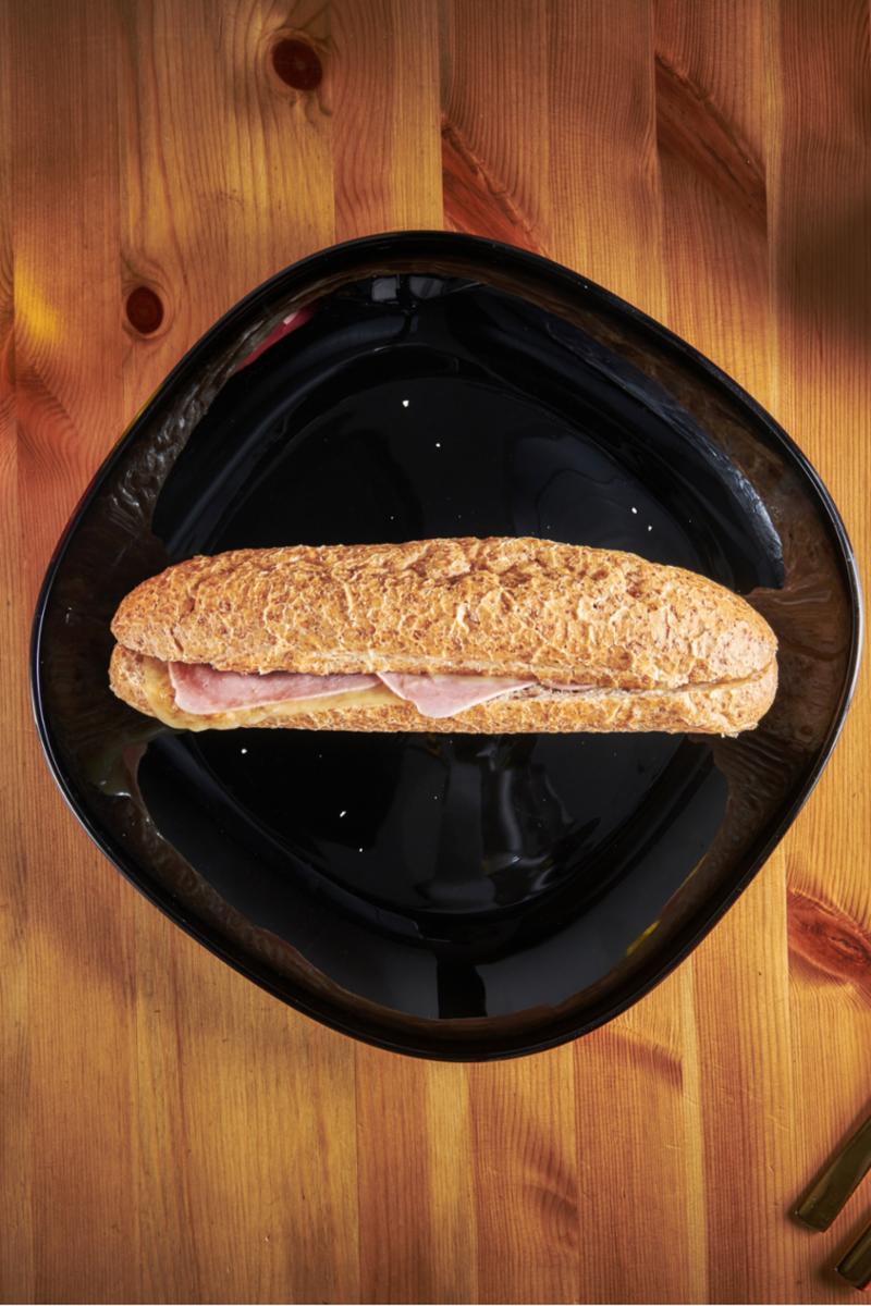 Baguette with ham and cheese. Allergen: wheat