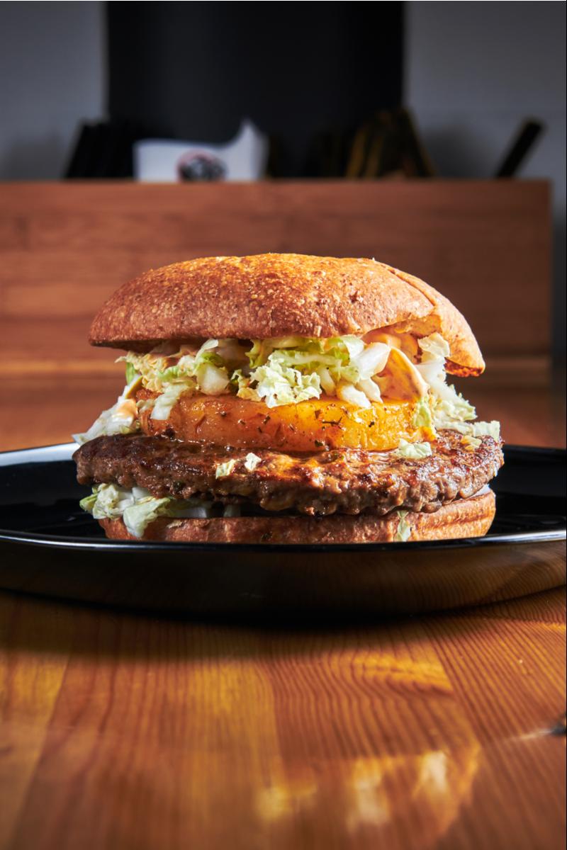 Pineapple fried in spiced butter, Chinese cabbage, dressing, onion, and pickles. Allergen: milk, soy, eggs, mustard, oats, and wheat