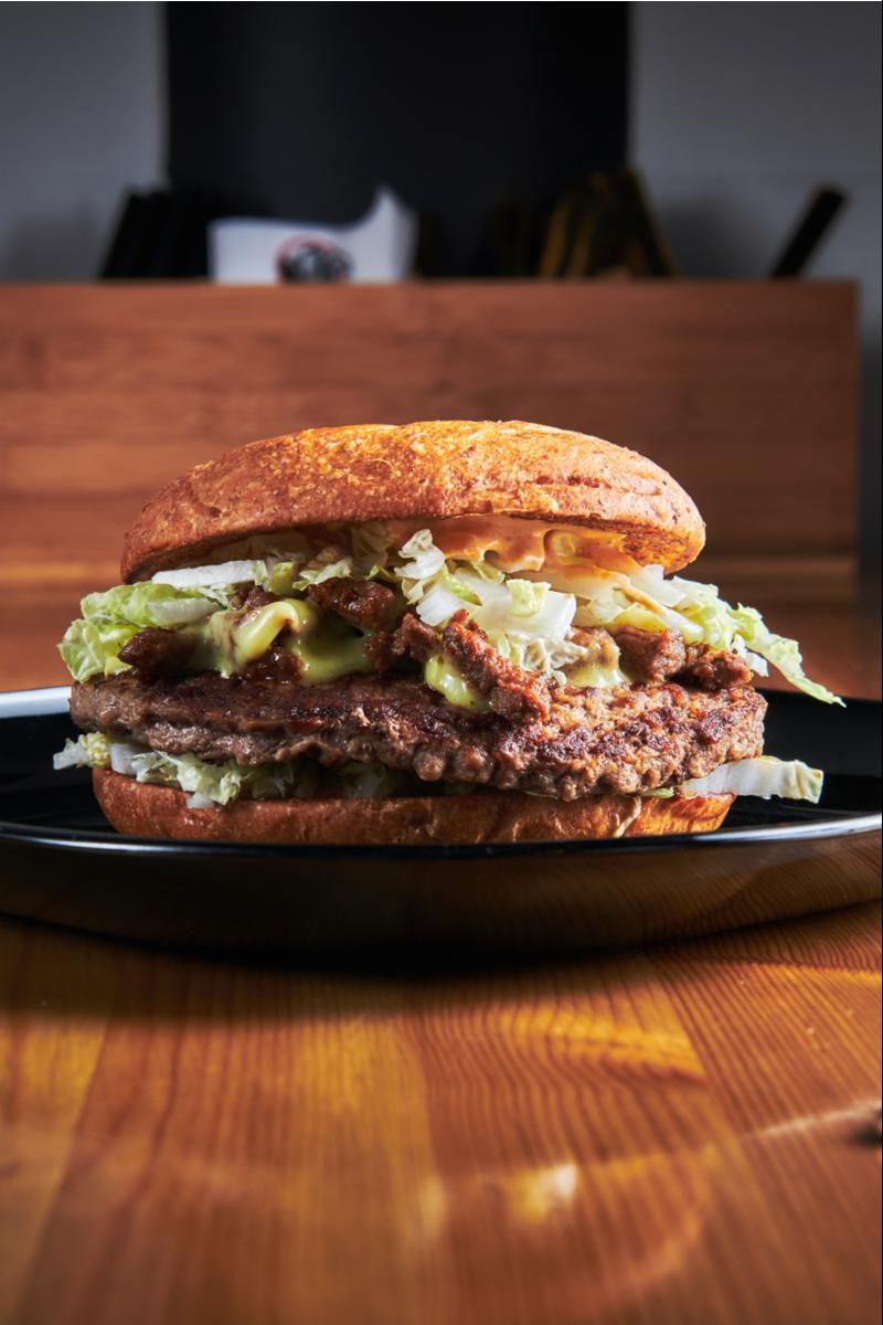 Beef, bearnaise sauce, Chinese cabbage, dressing, onion, and pickles. Allergen: celery, milk, soy, eggs, mustard, oats, and wheat